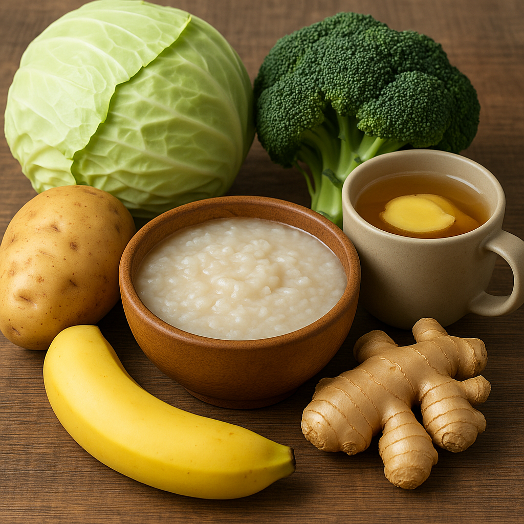 위장에 무리가 있을 때는 미음이나 죽이 가장 좋은 선택입니다. 자극이 적고 소화가 잘 되기 때문에 회복식으로 적합합니다. 여기에 감자나 양배추즙을 함께 넣으면 위 점막 회복에 도움이 됩니다.