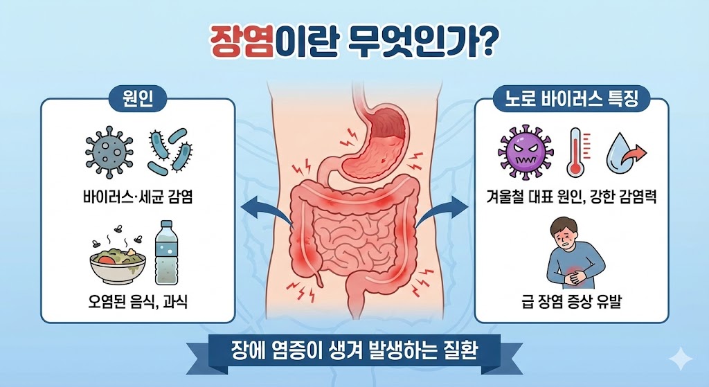 장염증상은 갑작스러운 복통과 설사뿐만 아니라 전신 증상까지 동반해 일상생활을 크게 불편하게 만드는 질환입니다. 특히 겨울철에는 노로 바이러스 유행으로 급 장염 증상이 폭발적으로 증가하며 구토, 두통, 발열이 함께 나타나는 경우가 많습니다. 오늘은 다양한 장염증상과 원인, 관리법을 한 번에 정리해드립니다.